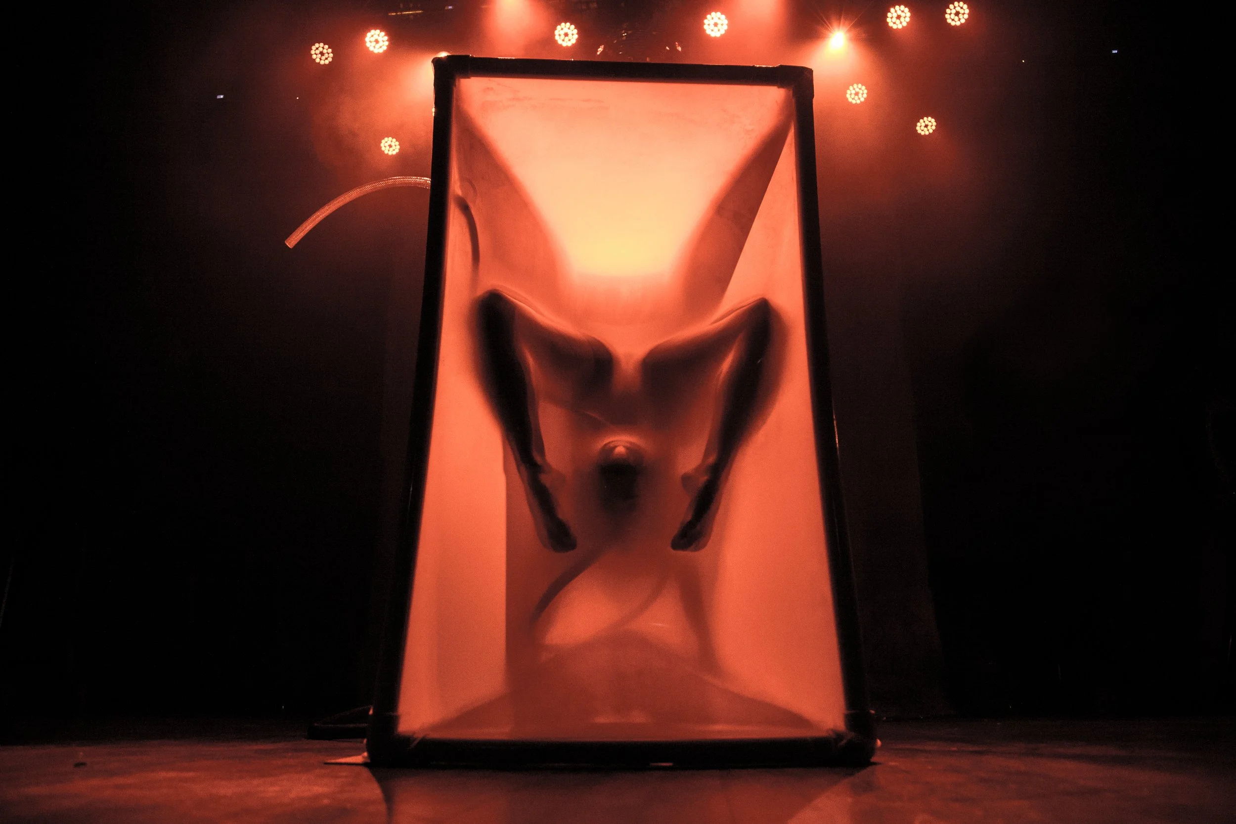 Ess Hödlmoser’s body of work uses contemporary circus to explore the relationships between risk, spectacle, gender, performance, and transition. Their work (VACUUM [2020], BARBETTE [2023]) pushes the boundaries of contemporary contortion, using the acrobatic body as a site of investigation into the meaning of spectacle, gender identity & performance, perception, memory, and more.